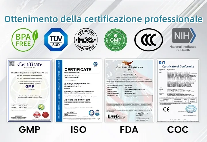 Diverse certificazioni: FDA, CE, ISO 13485, GMP
